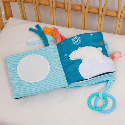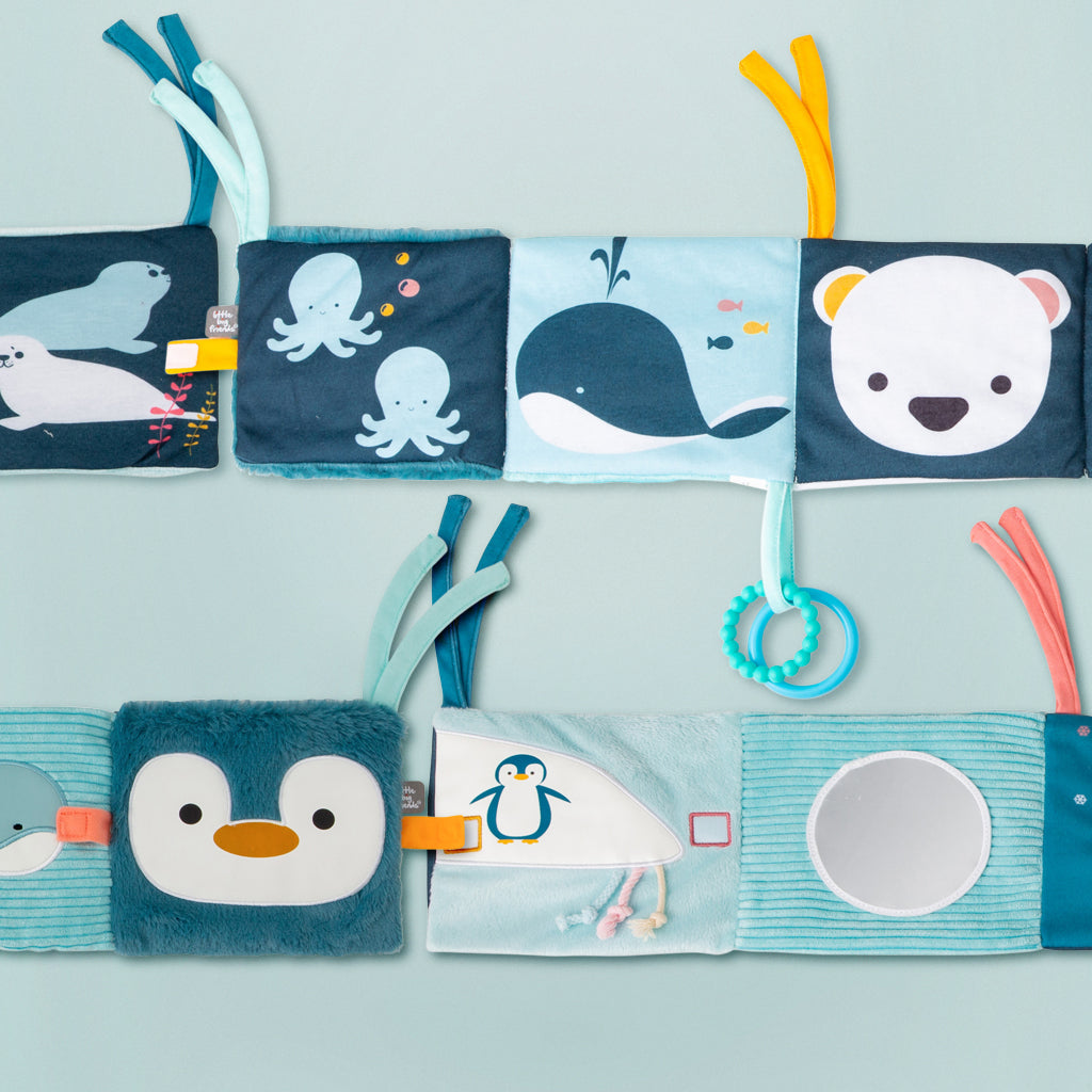 Featuring a gorgeous ocean theme throughout, including penguins, whales, turtles, and a plethora of others, this visually stimulating book is sure to become baby's favourite as they explore the textures on each page. Equipped with a teething ring, tassels and a mirror to entertain, it is also easy to attach to a crib or pram for convenient use.