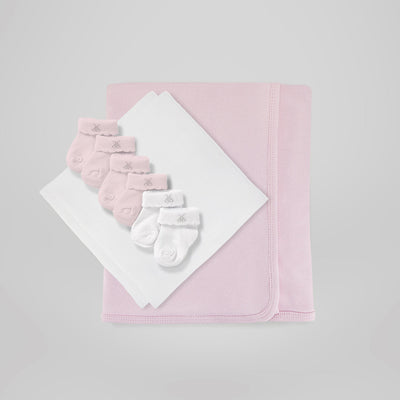 Our lovely pink diaper cake makes a splendid centrepiece for a baby shower or a scrumptious maternity or new baby gift. The two-tiered cake is both beautiful and practical as it cleverly contains disposable diapers, a soft cotton snuggle wrap, muslins and three pairs of our special Babyblooms ‘stay-on’ socks.