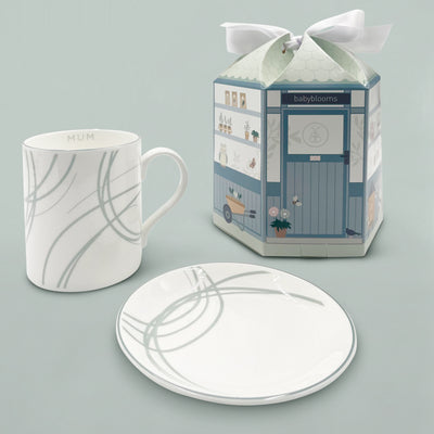 This fabulous set is designed by our lead designer, Amanda Bradley, incorporating our Babyblooms signature green tone with a swish and swirl design.  'MUM' is printed on the inside of the mug.