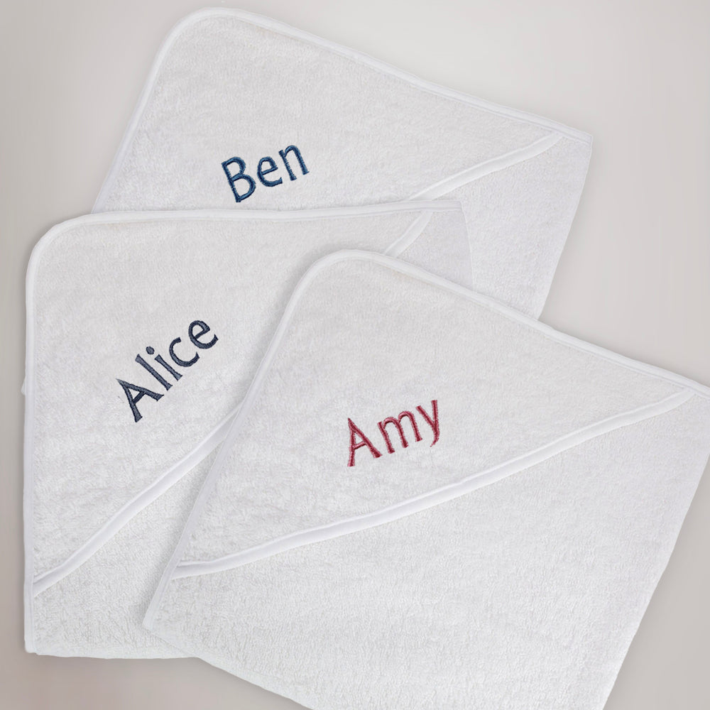 Our hooded towels are also 100% cotton and supremely soft for your baby's skin. We have both newborn hooded towels and children's hooded towels available - each with the option to be personalised should you desire.