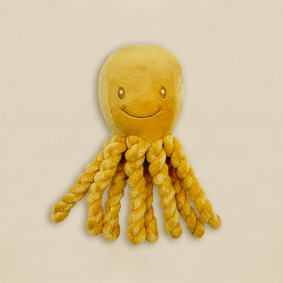 The delightful Ollie Octopus soft toy from Nattou has been designed with premature babies in mind.   The plaiting of the tentacles remind them of the umbilical cord, helping them to feel safe and secure.  A soothing, calming and cuddly friend for  baby.  Ollie is suitable from birth, 100% polyester and machine washable at 30 degrees.  Dimensions:  21.5 x 8 x 6.5cm.