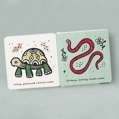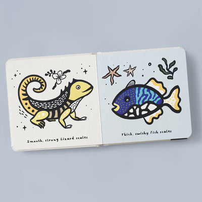 Entertain little ones with Wee Gallery's Touch and Feel, Scales sensory book!