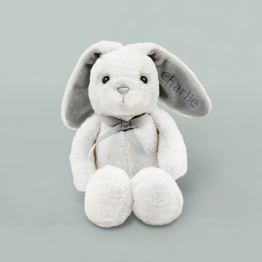 This gift is made extra-special by the addition of baby’s name (up to ten characters) in velvety soft flocking on the ear.     If you would prefer Bunny not to be personalised, please enter NONE in the personalisation field.