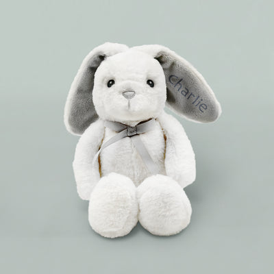 Personalised Christmas Baby Bunny with Christmas Gift Box, Grey