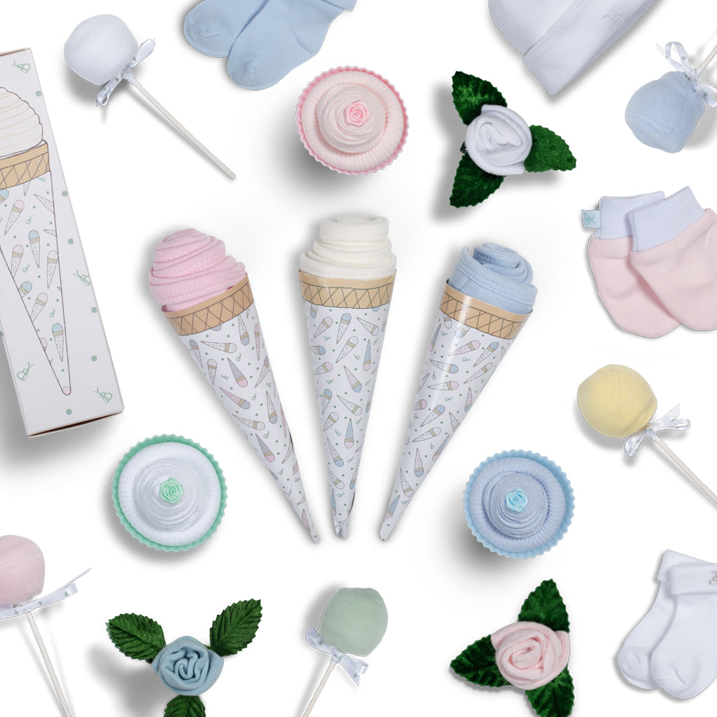 Not every occasion calls for a luxury gift hamper and because we make everything in-house, we are able to cater to any requirement. Some of our smaller components such as the sockpops, ice cream bibs, cupcake socks, Belgian chocolates and English fudge can be combined to create the perfect solution for any budget.