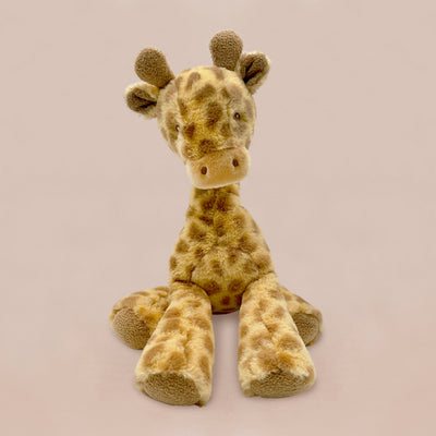 With his luxuriously soft coat and weighted paws, Georgie Giraffe makes the perfect first cuddly companion, happily sitting and waiting for snuggles. Crafted as part of our sustainable EcoToys range, he is made from 100% recycled materials and finished with embroidered eyes- saving on the use of unnecessary plastics. Suitable from birth and standing at 28cm tall, Georgie is the perfect size for snuggles.