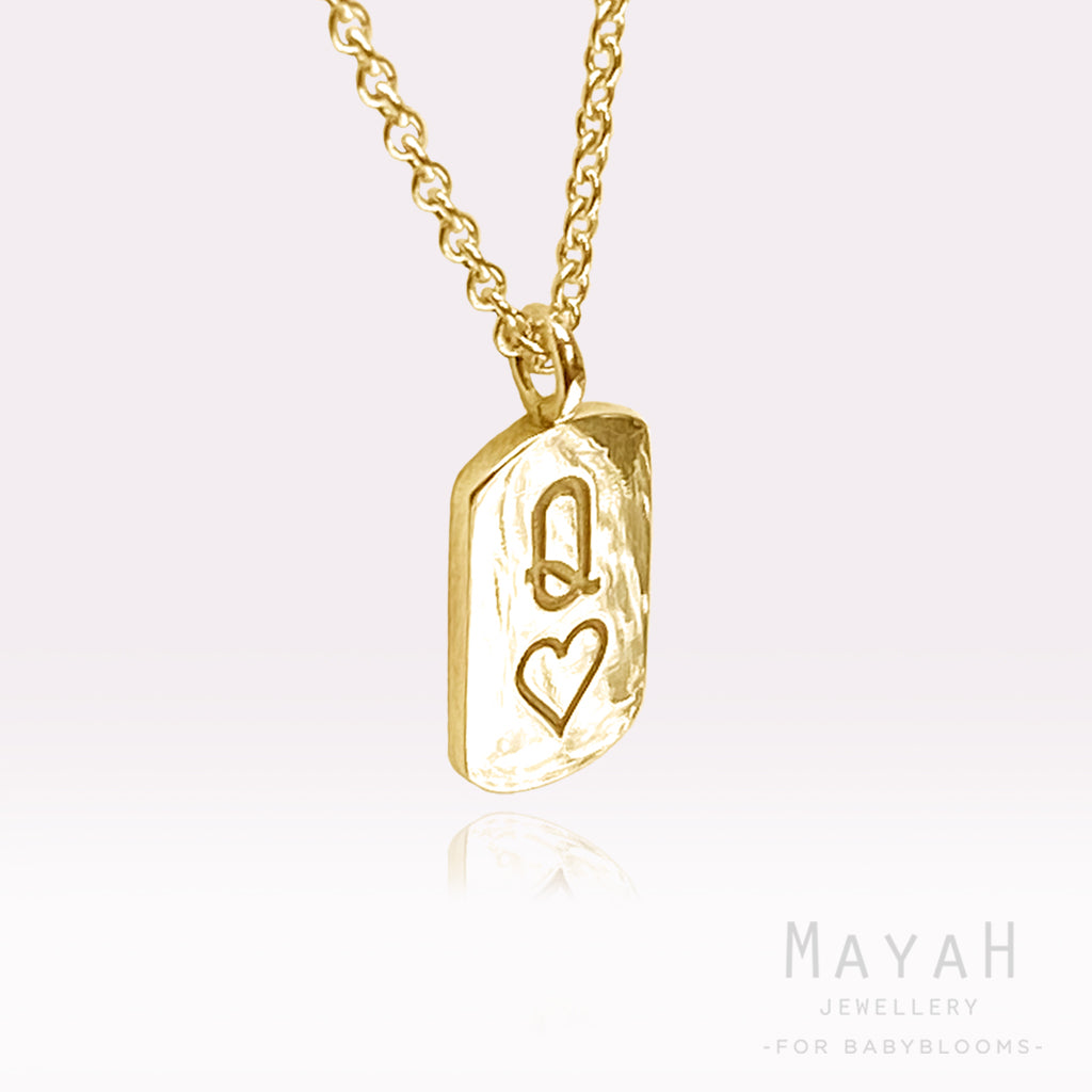 A dainty Queen of Hearts mini tag pendant in 18ct gold vermeil on a delicate trace chain.