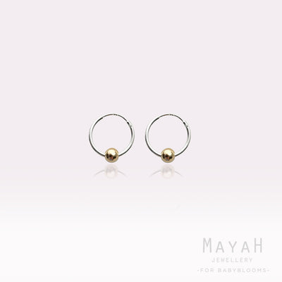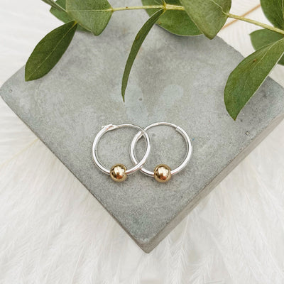 Classic silver sleeper hoops featuring a single 9K gold bead. Perfect everyday earrings. These earrings are super light and comfortable on the ear.
