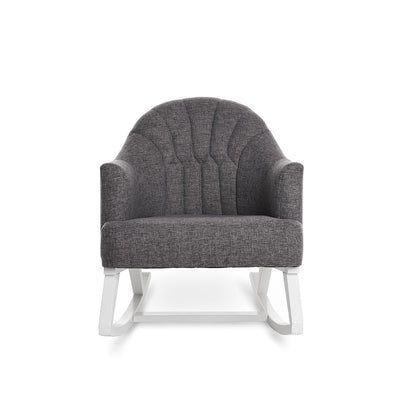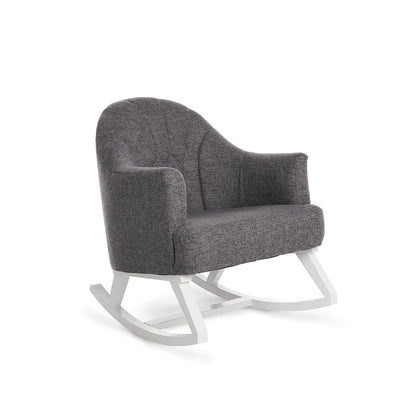 The solid wooden frame provides long lasting support while the deep foam seat and back cushioning envelopes you, providing the maximum in comfort. The Obaby round back rocking chair is designed to fit into any nursery setting due to its soft and durable weaved upholstery in a neutral shade of grey.