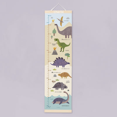 Personalised Canvas Height Chart with Wooden Hangers, Dinosaur