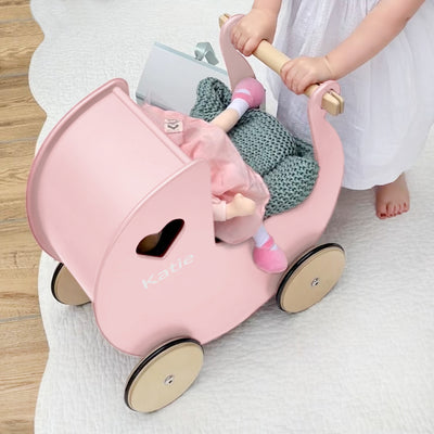 Moover's gorgeously crafted Pink Wooden Dolls Pram will last for years into the future.