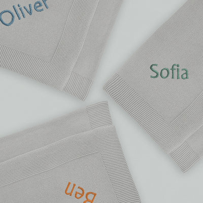 Beautiful yet practical, Babyblooms' 100% cotton Grey Knitted Blanket is a luxurious way to keep little ones warm and cosy. To make it extra special, it can be personalised with the name of your choice in a beautiful bold orange to match Bronko. If a name is not required, please write 'NONE' in the personalisation field.