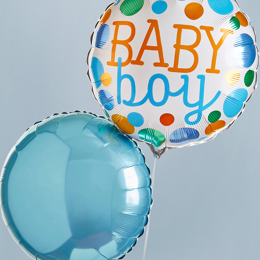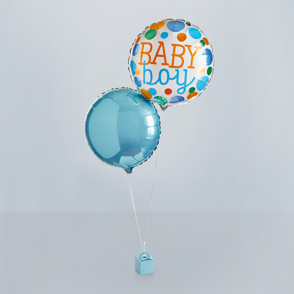 Each measuring 18 inches in diameter, the balloon duo comprises of a 'It's A Boy' balloon adorned with a blue watercolour design with gold stars, along with a plain blue foil balloon. These will arrive pre-filled with helium and attached to a weight, ready to bring a touch of elegance to the special occasion.