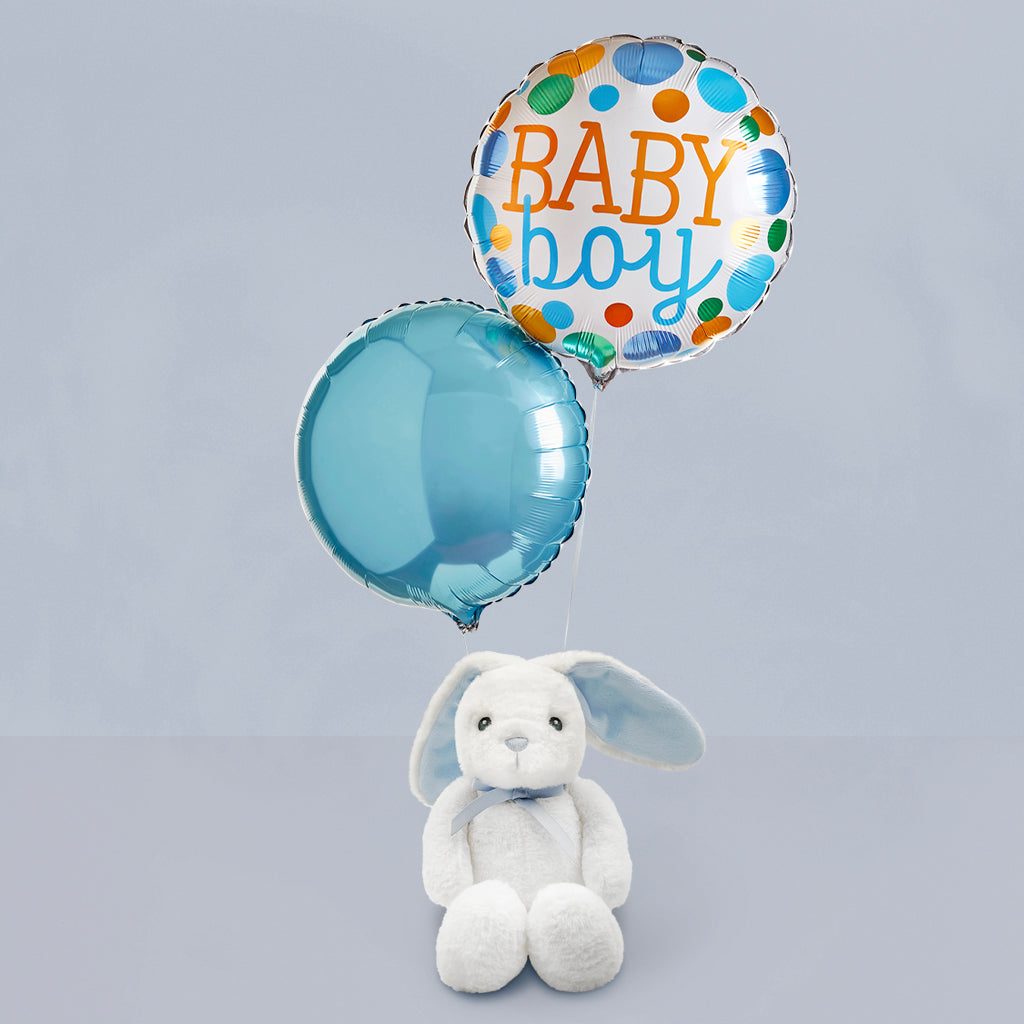Celebrate a new baby with a surprise balloon duo and their very own Little Blue Bunny Soft Toy- a perfect way to welcome a new arrival!