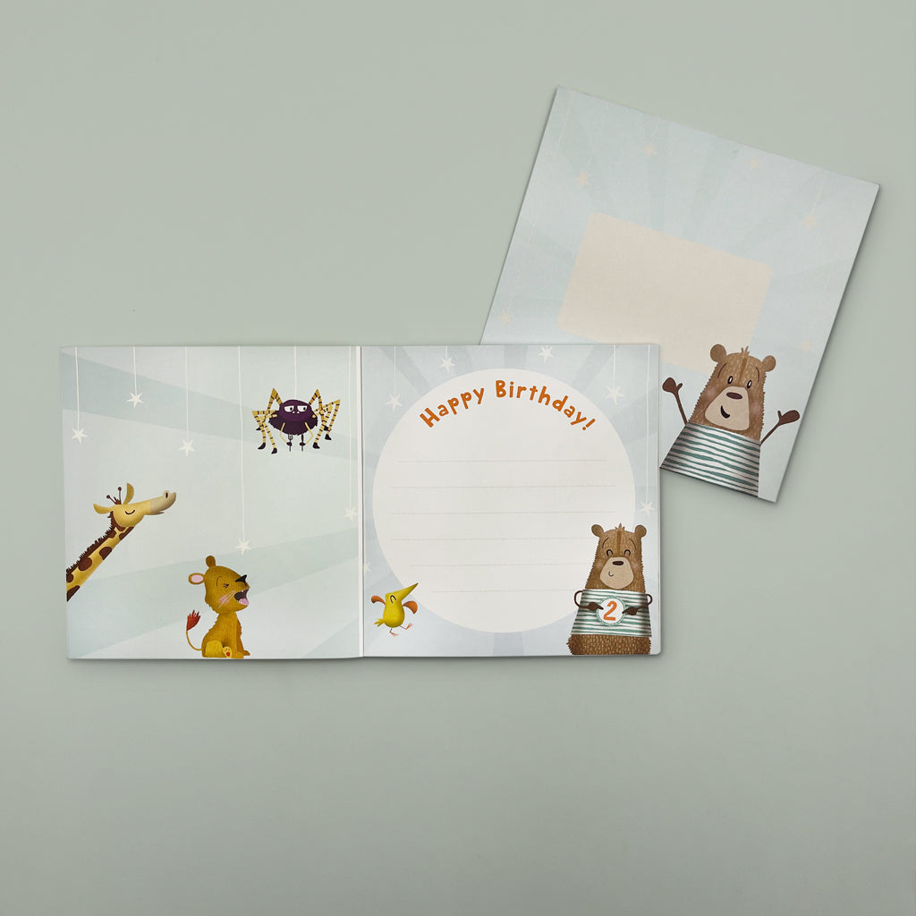 To make the gift extra special is a pair of birthday balloons, matching the colour on Bertie's jumper and the book. Pre-filled with helium and tethered to a weight - ready to be enjoyed on the special occasion.